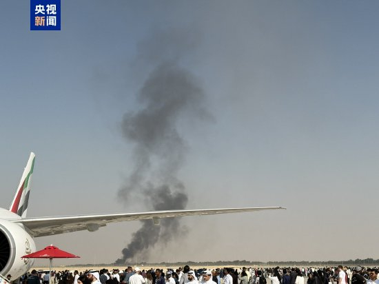 印度光辉战机飞行表演时坠毁。迪拜阿联酋迪拜航展最后一天,航展现场燃起浓烟。印度